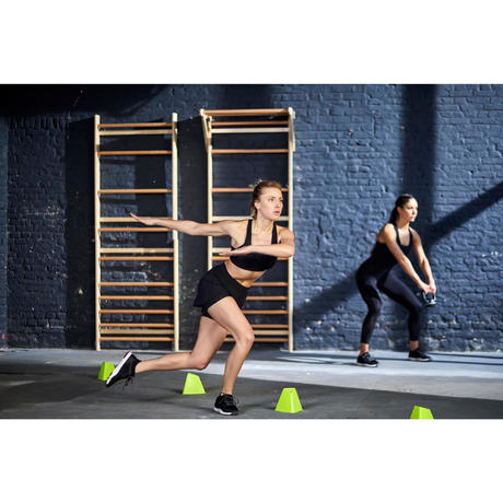 L’impact entre le pied et le sol se crée au niveau de l’avant pied lors de la pratique du fitness alors que pour la course à pied les impacts se situent généralement au talon. Nous concevons nos chaussures avec un amorti optimal à l'avant pied pour protéger votre corps des impacts répétés tout en stabilisant vos appuis pour un meilleur enchaînement des mouvements.