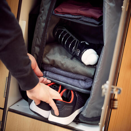 Le sac de fitness 40 litres a été pensé et conçu pour les pratiquants se rendant à la salle de sport avant, pendant ou après le travail. Ce sac vous permet de transporter votre tenue et vos accessoires de fitness. Composé de multiples compartiments, il vous permet de bien ranger vos affaires et vous facilite l'utilisation.Pratique à transporter grâce à ces 4 modes de portage, ce sac a été conçu pour s'adapter à la taille du casier dans les vestiaires grâce à sa forme.