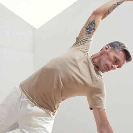 T SHIRT MANCHES COURTES SANS COUTURES YOGA DOUX HOMME BEIGE