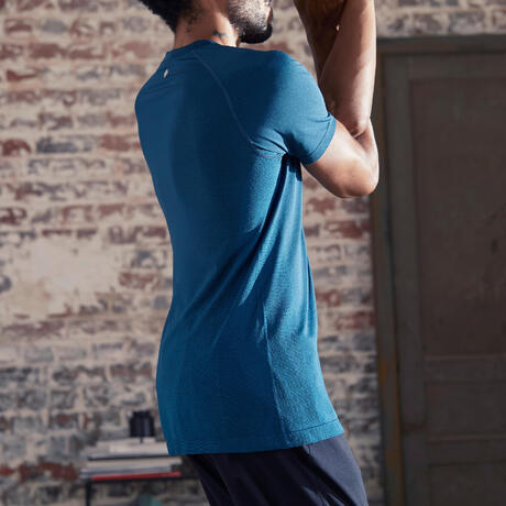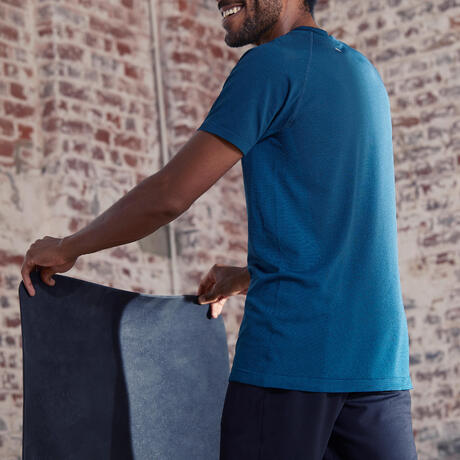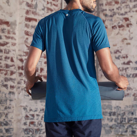 T SHIRT MANCHES COURTES SANS COUTURES YOGA DYNAMIQUE HOMME BLEU