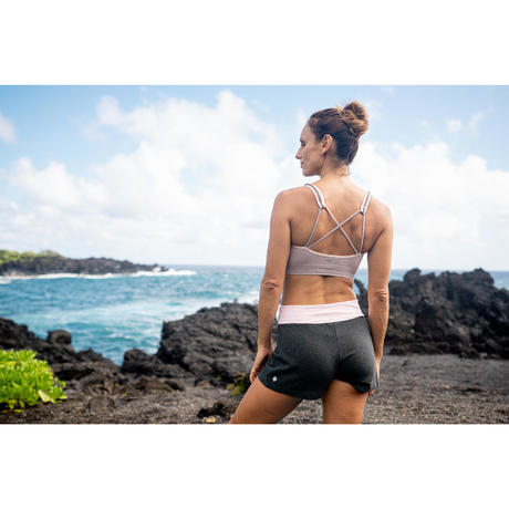 SHORT YOGA DOUX FEMME EN COTON ISSU DE L'AGRICULTURE BIOLOGIQUE GRIS / ROSE