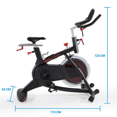 Le vélo VS900 est équipé d'une roue d'inertie de 20kg pour une pratique fluide et confortable. Son poids permet également un travail musculaire et cardiaque à forte intensité.