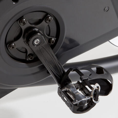 Les pédales sont équipées de cale pieds pour un meilleur maintien et peuvent être changées par des pédales automatiques si besoin.
